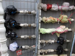 為防止家里的供水設(shè)施“被凍”,你可以采取以下幾種方式: ●安裝在室外的水表及水管,可用毛巾包捆;樓頂水箱應(yīng)蓋好頂蓋,上下進(jìn)水管及閥門等用保溫材料裹緊; ●如水表被凍住,用熱毛巾包裹,用不超過60℃的溫水澆灑,切勿澆沸水、用火烘烤; ●如水龍頭和水管(PPR和PVC管材)被凍住,可用電吹風(fēng)烘吹,或用毛巾包裹后用溫水澆淋,同時可取硬物輕拍水管,直到管內(nèi)冰凍消融; ●打開水龍頭,開成滴水狀態(tài)保持流水防止結(jié)冰; ●不常住人的房屋應(yīng)關(guān)閉室內(nèi)水表閥門,打開水龍頭,放盡水管中剩水。